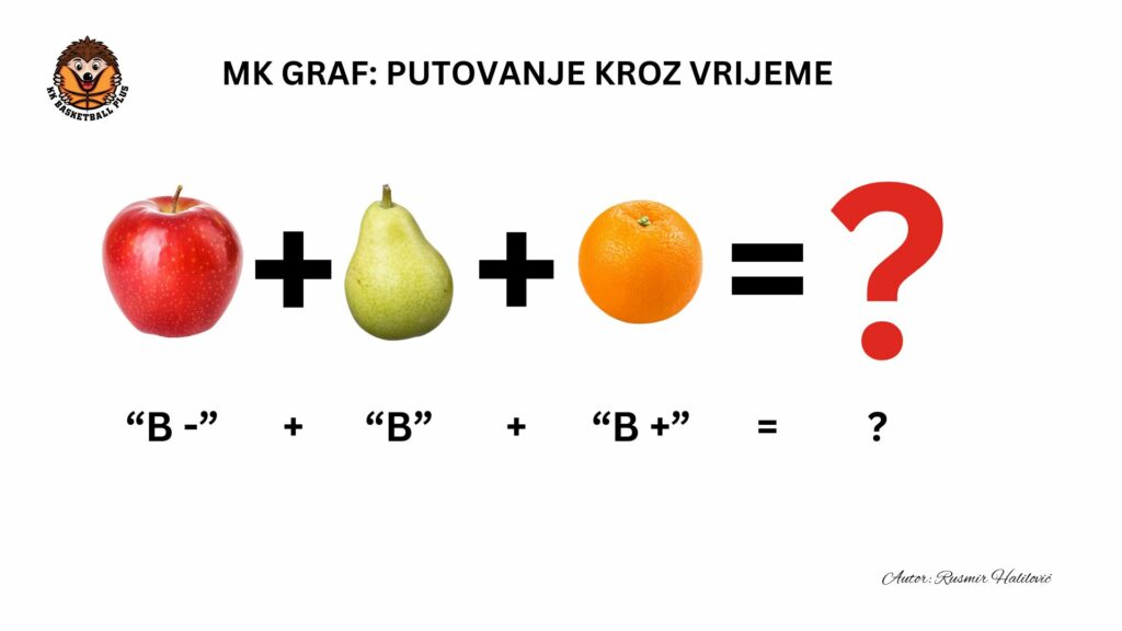 „Da bi danas dobro radio sa mladima moraš znati kakva će se timska košarka igrati sutra. Jučer („B-“), danas („B“), sutra („B+“) su vremenske distance kroz koje košarka vječno prolazi i prolaziti će, slično razvoju voća jabuka > kruška > naranča koje imaju svoje periode, dužine sazrijevanja i okuse. Matematičari kažu da se različite voćke ne mogu zbrajati, a moja malenkost dodaje, kao ni košarka tri različita vremena.