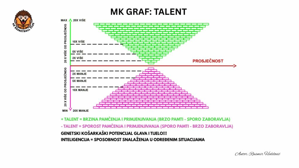 Košarkaši se stvaraju od različitih genetskih mentalnih i tjelesnih potencijala (DNK 46). Ispod prosječni su za rekreaciju i zdrav život, a iznad prosječni za vrhunski profi sport. Tko gdje pripada kazuju u pravo vrijeme MK testovi.